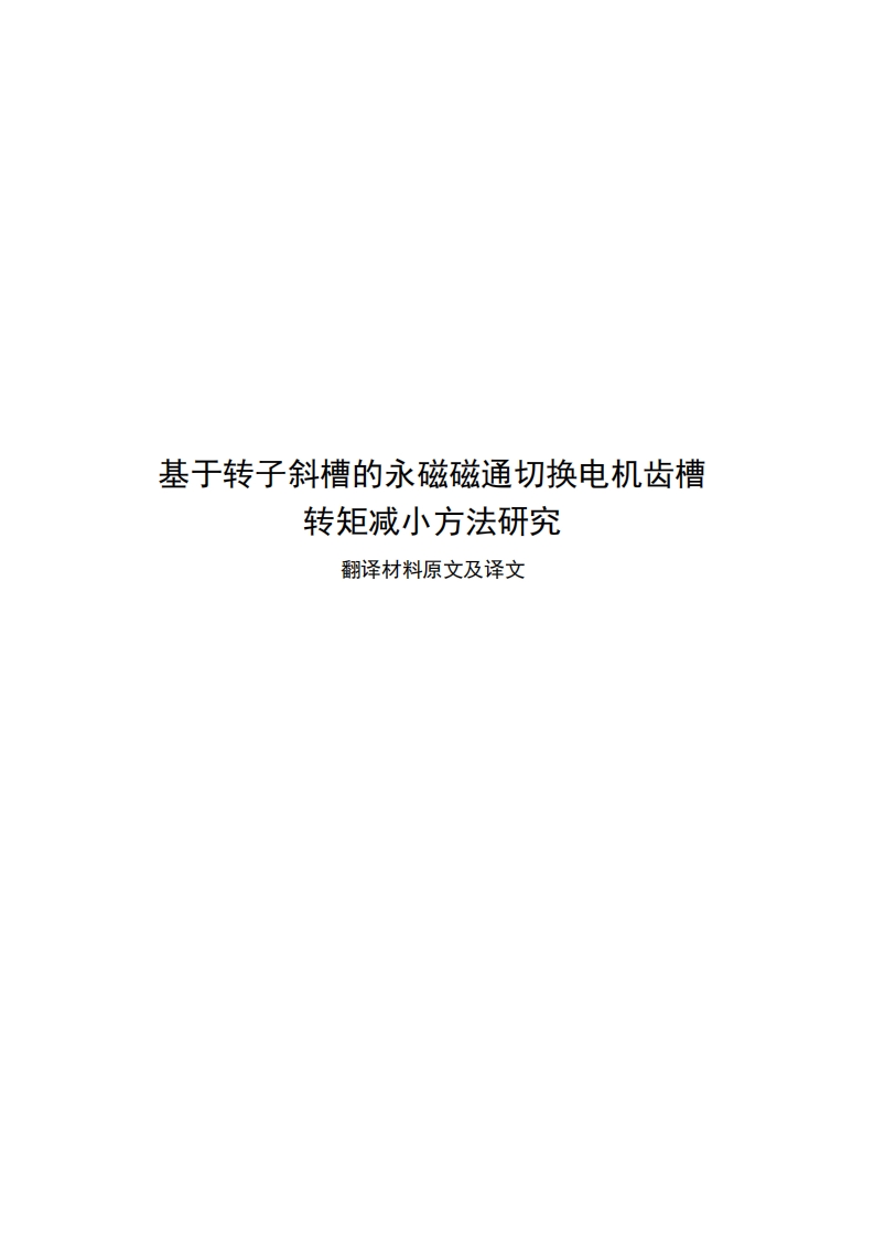 基于转子斜槽的永磁磁通切换电机齿槽转矩减小方法研究-翻译材料原文及译文